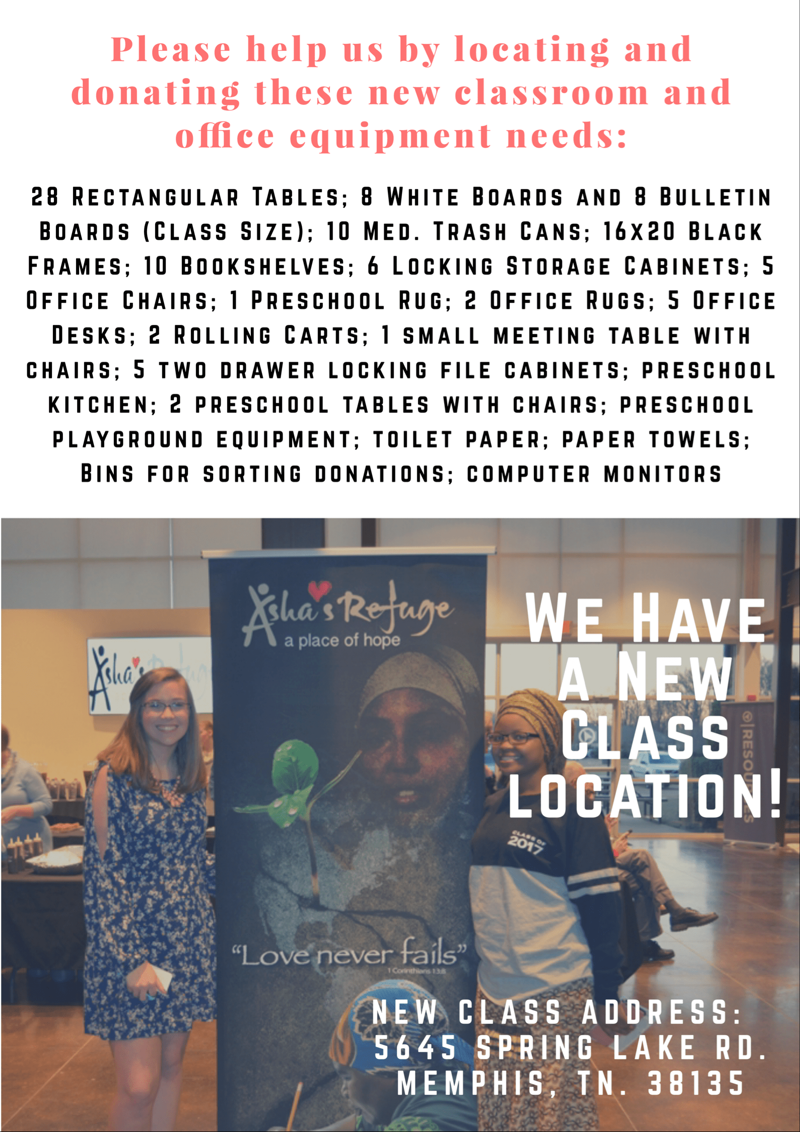 Asha’s Refuge is a faith based organization. Our volunteers seek to be the hands and feet of Christ and example God’s love to the nations which includes loving one another right here in America. We are blessed to have so many volunteers who have come from all different backgrounds and cultures to serve. We are blessed that many of our volunteers are Spiritually mature, but I myself was reminded today of the necessity of my putting aside all my own desires and giving whole heartedly with a servants heart as I lead others.