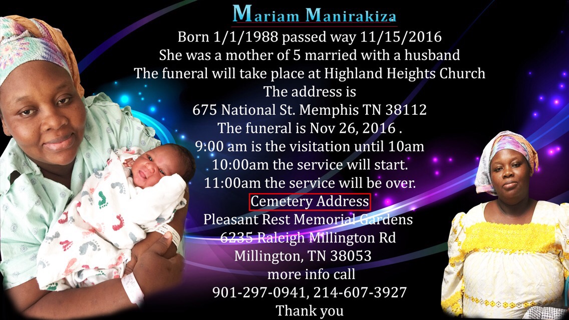 • Celebration of Mariam Manirakiza’s Life Today